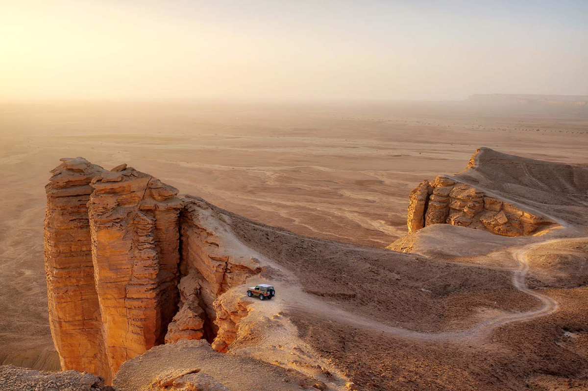 Trong ngày đầu tiên ghé thăm, tại vách đá có tên “Bên rìa thế giới” ở Arab Saudi, Todd đã ngắm nhìn mặt trời màu hổ phách trôi dần rồi biến mất ở đường chân trời. Với nam du khách Mỹ, tầm nhìn thoáng đãng không có vật cản ở khu vực này sẽ là một trong những khung cảnh ngắm hoàng hôn “khó nơi nào vượt qua”.