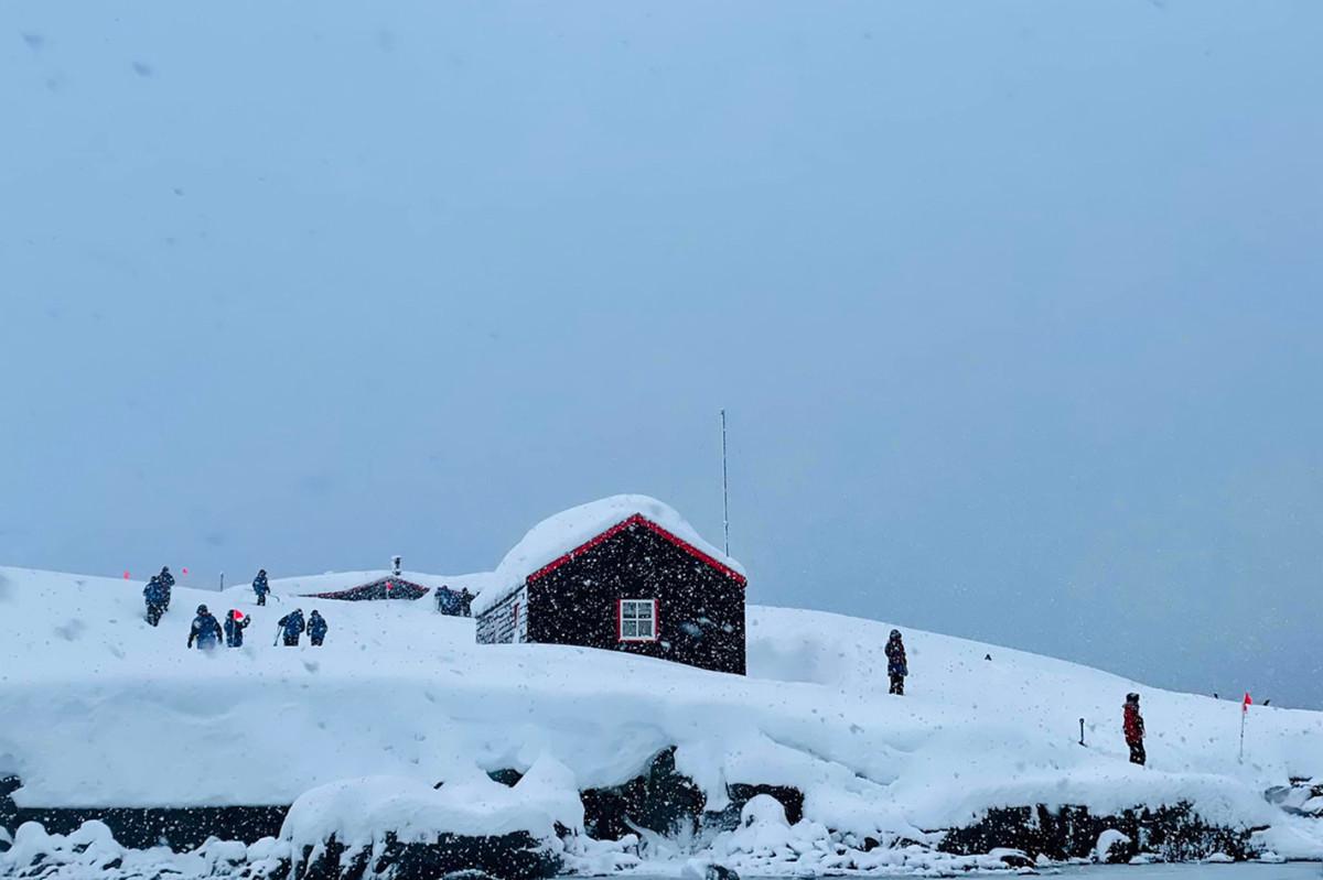 Bưu điện với mái đỏ bị phủ đầy tuyết trắng trên cảng Lockroy, Nam Cực. Ảnh: Hoàng Phụng Hiếu