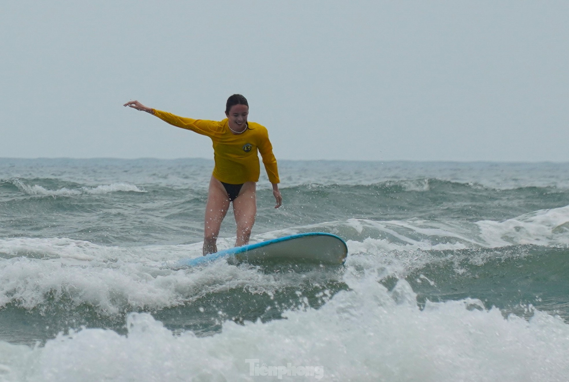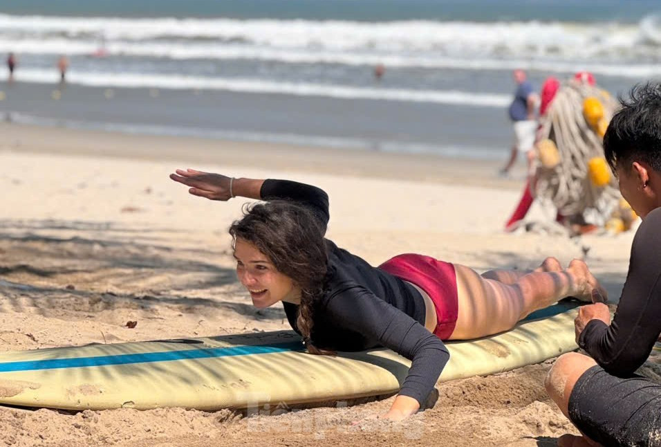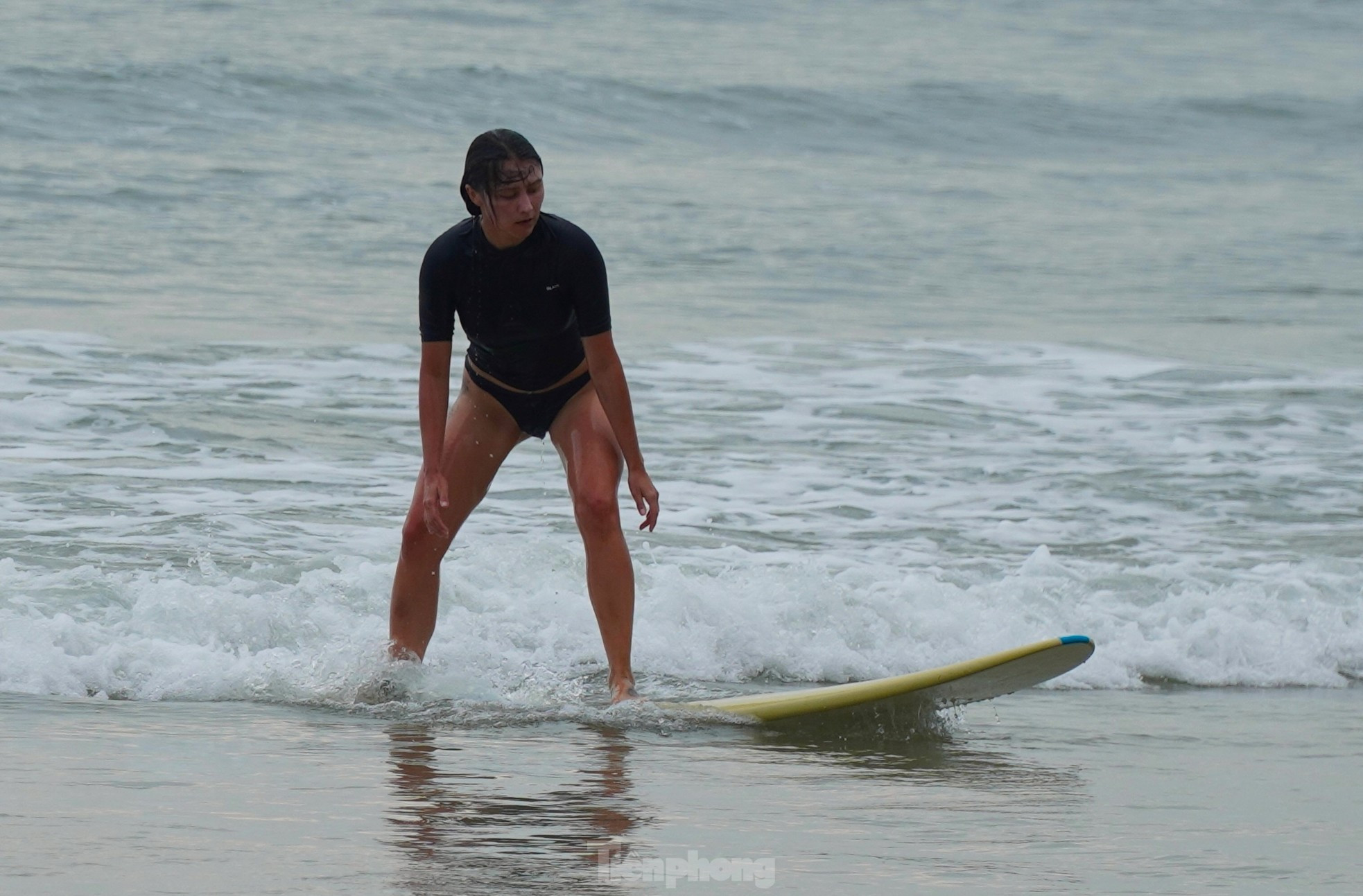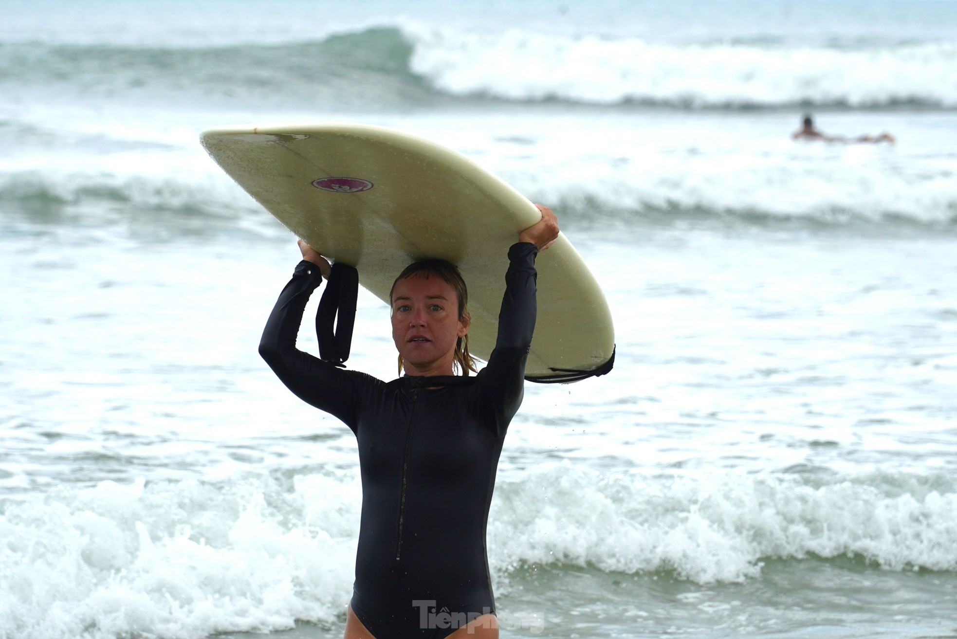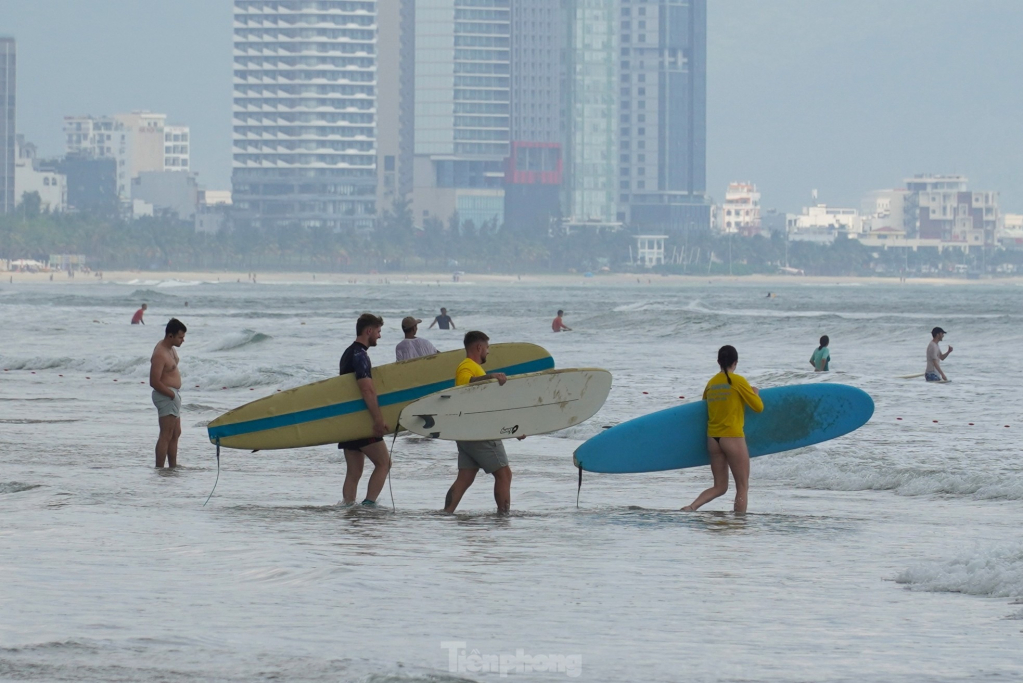 Trong khi khách nội địa ít dần vì bước vào mùa mưa lạnh, biển Đà Nẵng lại đang rất hút du khách quốc tế. Từ sáng sớm đến chiều tối, những nhóm du khách liên tục đổ về chơi lướt ván khiến vùng biển sôi động.