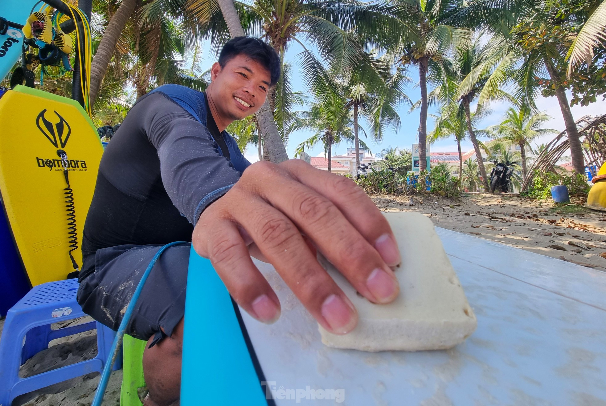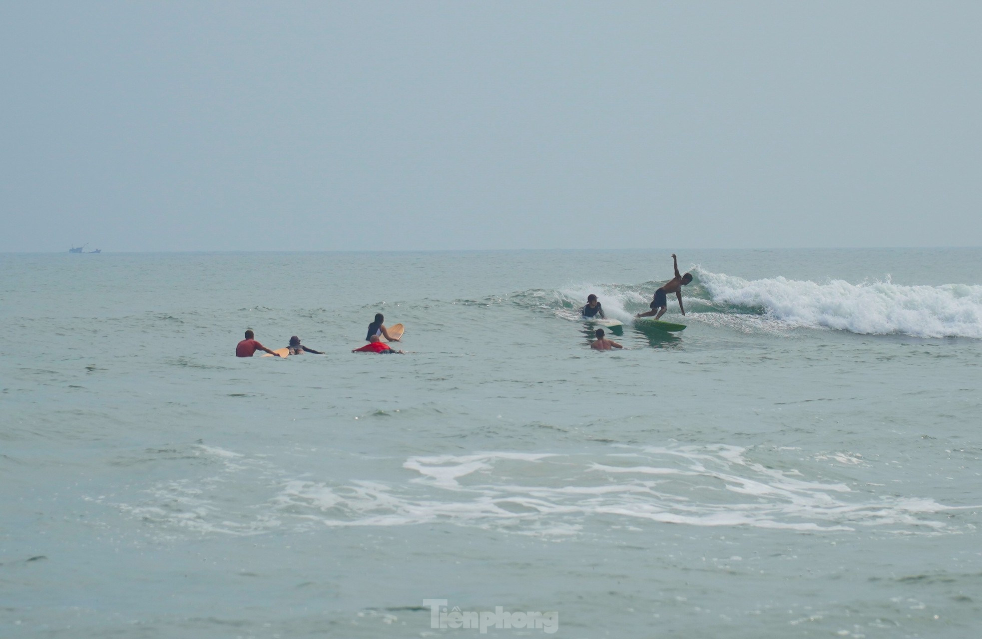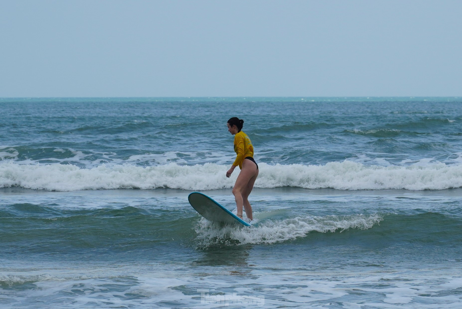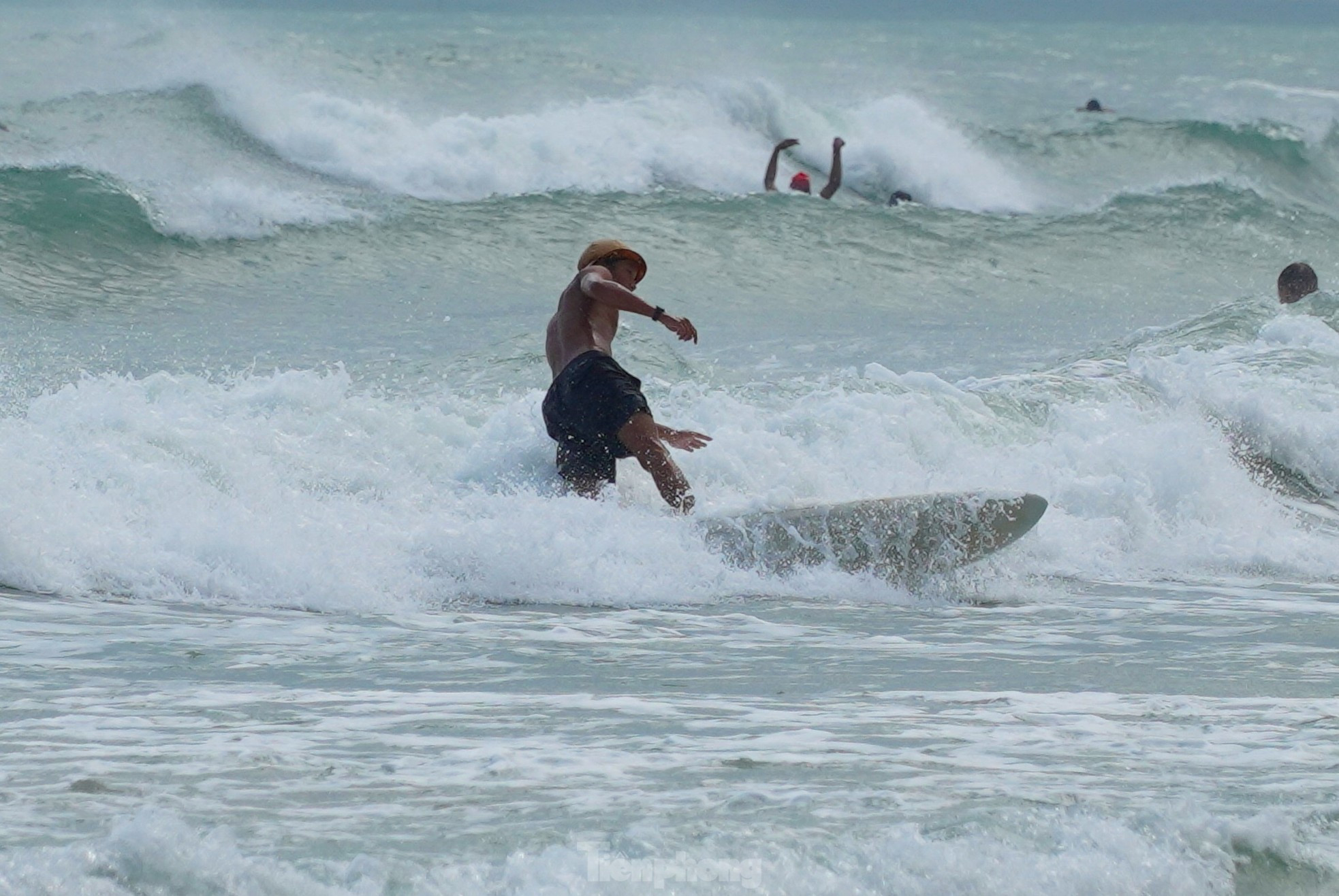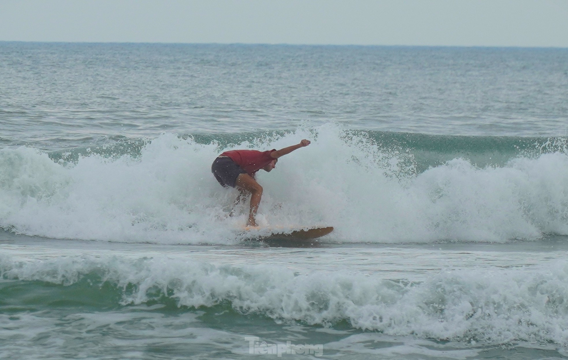 Trong khi khách nội địa ít dần vì bước vào mùa mưa lạnh, biển Đà Nẵng lại đang rất hút du khách quốc tế. Từ sáng sớm đến chiều tối, những nhóm du khách liên tục đổ về chơi lướt ván khiến vùng biển sôi động.