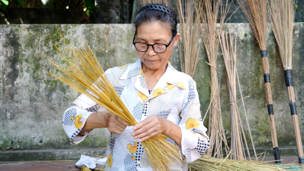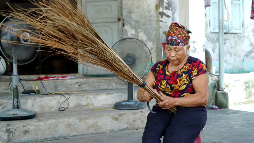 Là một trong những hộ gia đình tiên phong phát triển mô hình du lịch cộng đồng, nhà bà Bùi Thị Mận cũng trở thành địa điểm cho khách tham quan muốn tìm hiểu và trải nghiệm cách làm các loại chổi khác nhau.