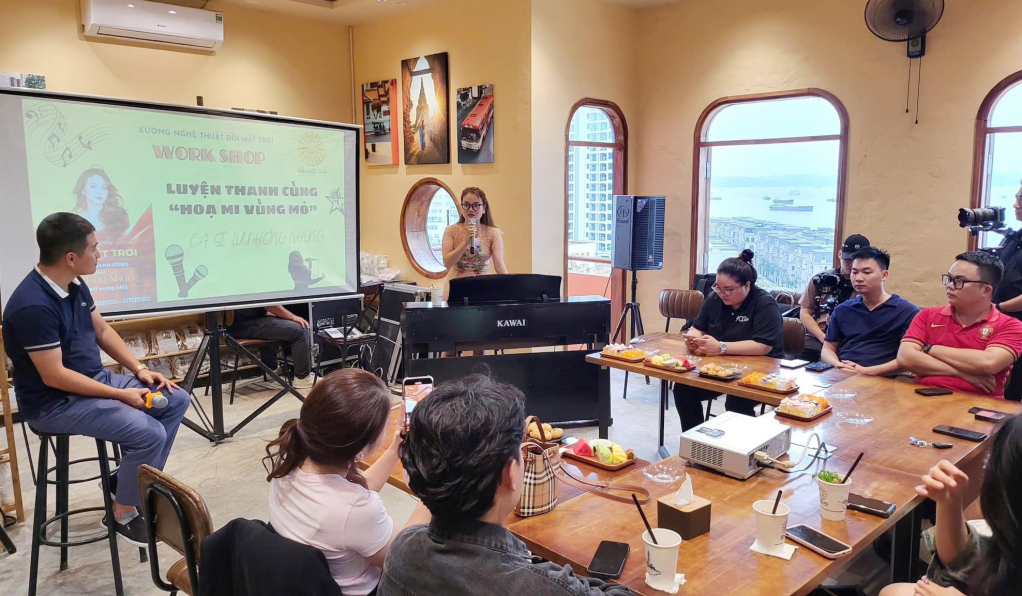 Tổ hợp dịch vụ Đồi Mặt Trời (phường Hồng Gai, Hạ Long) mới đây đã đưa vào hoạt động xưởng nghệ thuật gắn với không gian cà phê, ẩm thực của quán. Tại đây, khách hàng sẽ được trải nghiệm rất nhiều hoạt động như: Tô tượng, đính charm, vẽ tranh, khám phá nghệ thuật truyền thống, học một số kỹ năng thanh nhạc cơ bản… Đầu tháng 11 vừa qua, xưởng nghệ thuật của Đồi Mặt Trời đã diễn ra workshop “Luyện thanh cùng họa mi Vùng mỏ” với sự tham gia của ca sĩ Lưu Hồng Nhung. Buổi workshop diễn ra trong không khí cởi mở, vui tươi khi những học viên tham gia đã được ca sĩ khách mời truyền cảm hứng cũng như chia sẻ một số kỹ năng luyện thanh cơ bản dành cho những bạn yêu ca hát và muốn hát hay hơn.