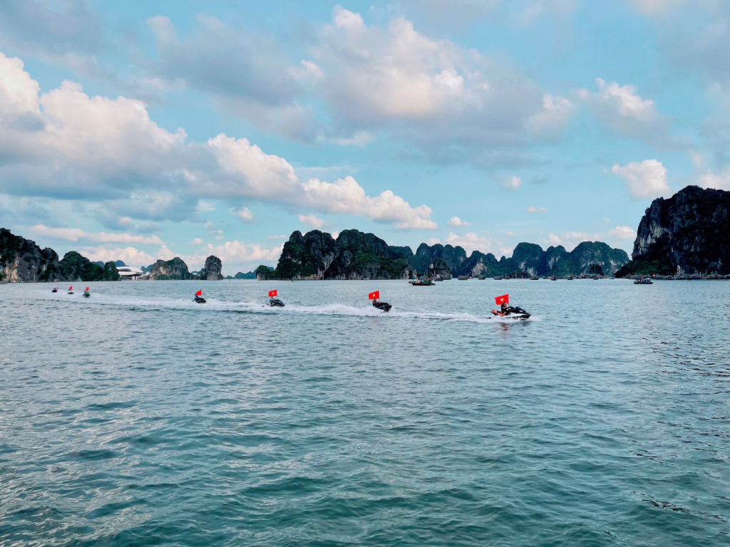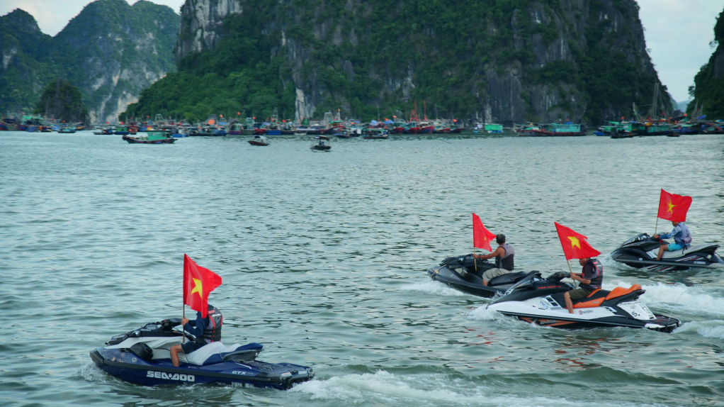 Từ 17h-20h ngày 24/8, 12 chiếc moto nước sẽ trình diễn chạy theo đội hình, diễu hành với cờ Tổ quốc. Đội moto sẽ khởi hành từ Cảng tàu khách Hòn Gai chạy dọc bờ biển đến khu vực bờ biển đối diện Công viên hoa Hạ Long. Cùng lúc đó, đội ván phản lực sẽ trình diễn quanh khu vực bờ biển đối diện Công viên hoa Hạ Long; đội dù bay xuất phát từ Quảng trường 30/10 cũng tiến vào khu vực trình diễn ở bờ biển đối diện Công viên hoa Hạ Long. Đây cũng chính là điểm nhấn trong chương trình “Vượt sóng Hạ Long – 2024.